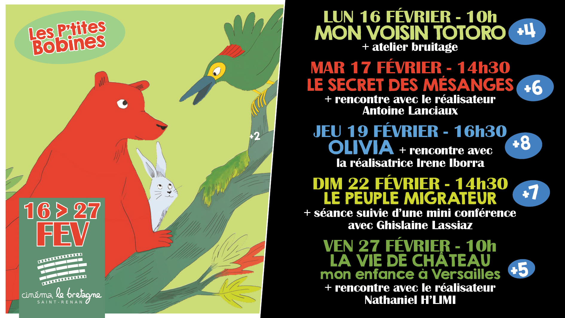 Les séances ont lieu dans les cinémas de Saint-Renan et Plougonvelin, en alternance, une fois par mois, le jeudi matin à 10h. Le tarif est de 3,5€ pour les enfants. Les assistantes maternelles et les parents bénéficient de la gratuité.